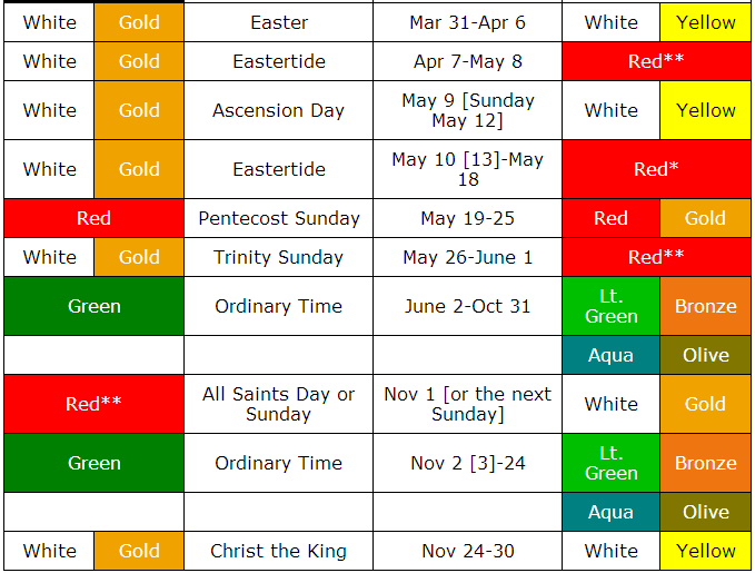 Colors Of Faith 2021 Liturgical Colors Roman Catholic - Colors Of Faith 2021 Liturgical Colors Roman Catholic ... : This is a catholic ordo (liturgical calendar) for the 2021 liturgical year for the holy sacrifice of the mass in the extraordinary form according to the missale romanum (1962) of pope st.